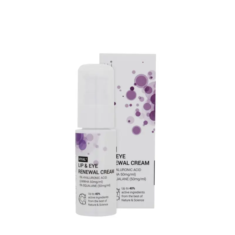 CLINICCARE Hyal Cream + Lip&Eye Renewal Cream – profesionalus kremas, skirtas paakių ir lūpų sričiai. Ši zona yra ypač jautri ir pažeidžiama. Pirmieji senėjimo požymiai dažniausiai atsiranda būtent čia. Plona oda greitai praranda drėgmę, stangrumą ir elastingumą. Šis kremas optimizuoja drėgmės lygį, apsaugo nuo dehidratacijos ir stiprina odos barjerą. Sudėtyje esanti mažos molekulinės masės hialurono rūgštis intensyviai drėkina ir suteikia stangrumo. Skvalenas neutralizuoja laisvuosius radikalus ir apsaugo nuo aplinkos žalos. Augaliniai ekstraktai ramina, regeneruoja ir palaiko natūralią odos apsaugą. Priemonė mažina nuovargio požymius, patinimus, smulkias raukšleles ir pagerina odos tonusą. Tekstūra lengva, greitai susigerianti, todėl kremas puikiai tinka kasdieniam naudojimui. Galima naudoti kaip bazę prieš makiažą arba po procedūrų.