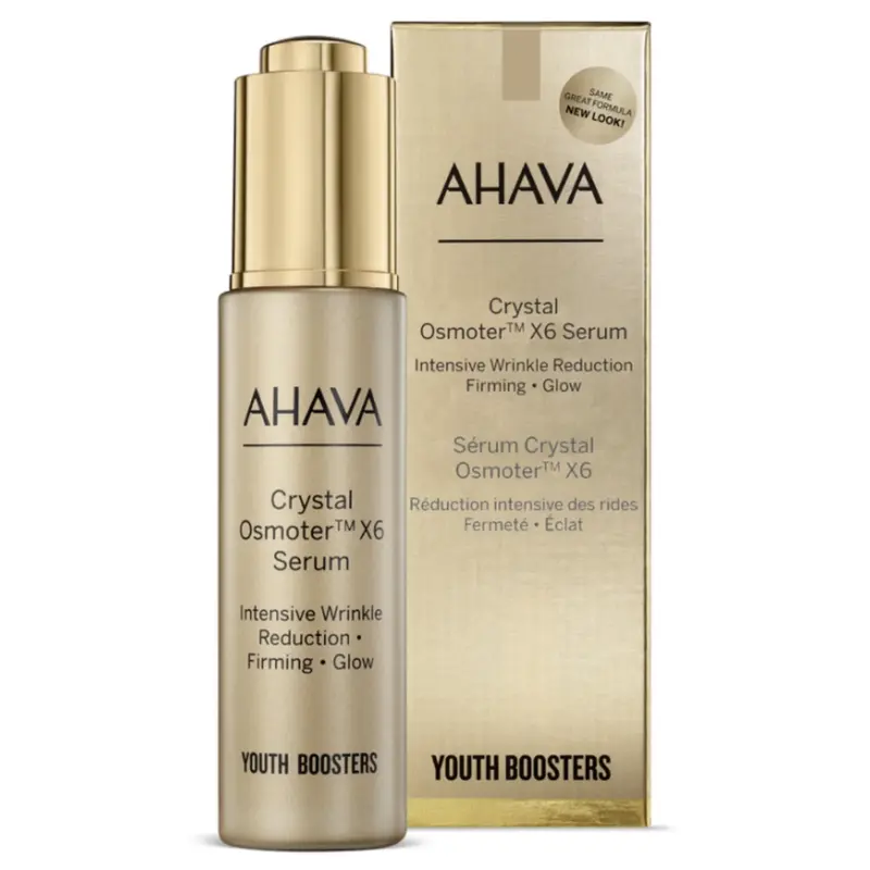 AHAVA Osmoter X6 Serum Youth Booster – intensyvus, lipidinis veido serumas, sukurtas atkurti odos spindesį, elastingumą ir jaunatvišką išvaizdą. Šio serumo formulė pasižymi šešis kartus koncentruotu Osmoter™ – Negyvosios jūros mineralų kompleksu. Kuris skatina drėgmės cirkuliaciją, energizuoja ląsteles ir suteikia odai švytėjimo. Praturtintas omega riebalų rūgštimis, vitaminu E ir augaliniais aliejais, serumas stiprina apsauginį odos barjerą ir saugo nuo laisvųjų radikalų. Lengva, šilkinė tekstūra greitai įsigeria ir akimirksniu suteikia komforto pojūtį. Oda tampa minkšta, lygi, elastinga ir spindinti jau po pirmo naudojimo.
