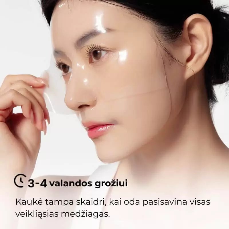 Tai aukštos kokybės korėjietiška hidrogelio lakštinė veido kaukė, skirta intensyviam drėkinimui ir odos komfortui atkurti. Kaukė akimirksniu suteikia odai gaivumo ir padeda atkurti jos elastingumo pojūtį. Ji ypač naudinga, kai oda atrodo pavargusi ar praradusi gyvybingumą.