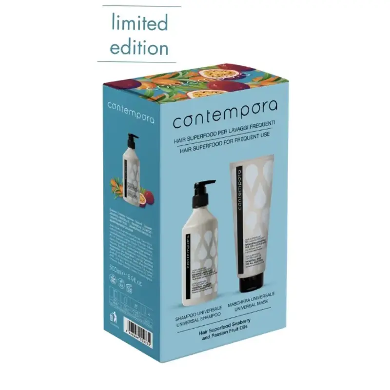 Profesionali, universali plaukų priežiūros sistema, skirta visų tipų plaukams. Rinkinį sudaro didelės talpos šampūnas ir universali kaukė, pritaikyti reguliariai, kasdienei priežiūrai be apsunkinimo. Švelnios formulės efektyviai valo, drėkina ir palaiko natūralų plaukų bei galvos odos balansą.